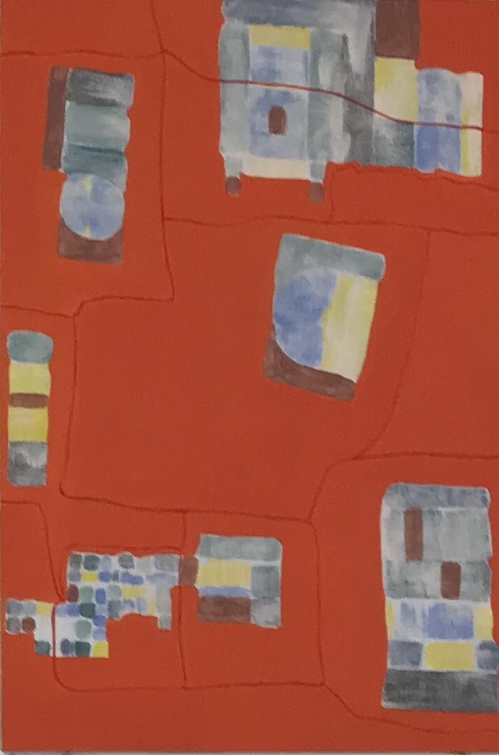 I was experimenting with the subject of psychogeography and the 3 paintings in this series are imaginary walks.