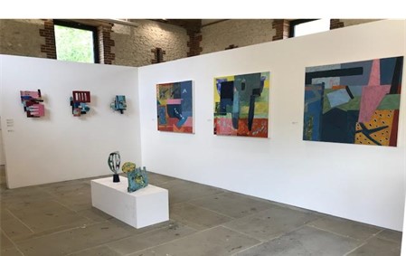 The Exhibition was not in the main College instead it was housed closeby in a couple of barns which had been converted into studio spaces. It was well sign posted so easy to find and on entering an organiser was immediately on hand to assist with the visit. An exhibition booklet was available free of charge and some guidance was given on the recommended route around the exhibition. The second smaller barn which was adjacent to the main exhibition had been used for the sculptures and larger installations.