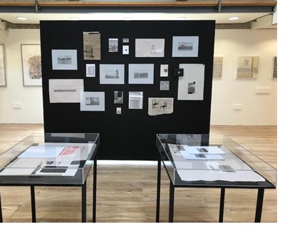 These works by other students are displayed in a way that reminds of a display of exhibits in a museum. The display cases were a good height and were an excellent way to display the works. The back partition highlighted the neutral colours of the works, mainly drawings.